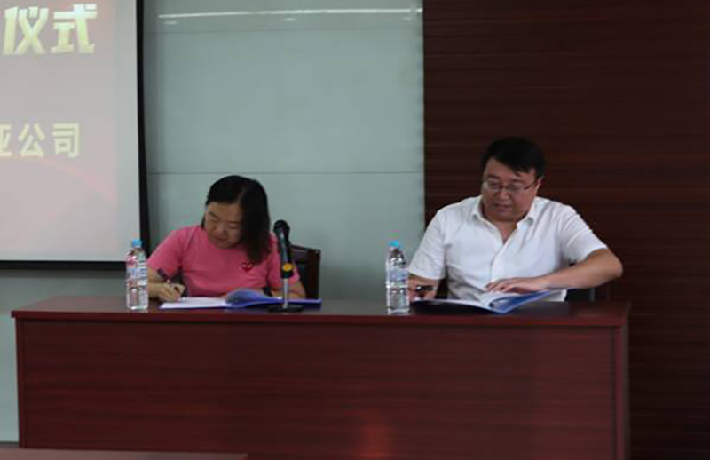 圖片說明:泛亞公司黨總支副書記、總經理趙民佶,宏亞公司黨支部書記、執行董事、總經理岳琳分別代表雙方簽署戰略合作協議