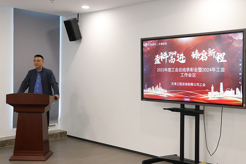 五一勞動節來臨之際,天津咨詢工會召開2023年度總結表彰會暨2024年工會工作會議。天津咨詢工會和所屬各基層工會委員會委員、工會干部以及在2023年工會活動和工會工作中表現突出的先進集體和先進個人代表出席會議。會議還專門邀請了天津咨詢黨委副書記、紀委書記朱震及天津咨詢黨委工作部負責人和所屬各單位黨組織書記參加會議。會議由天津咨詢工會主席孫連杰主持。