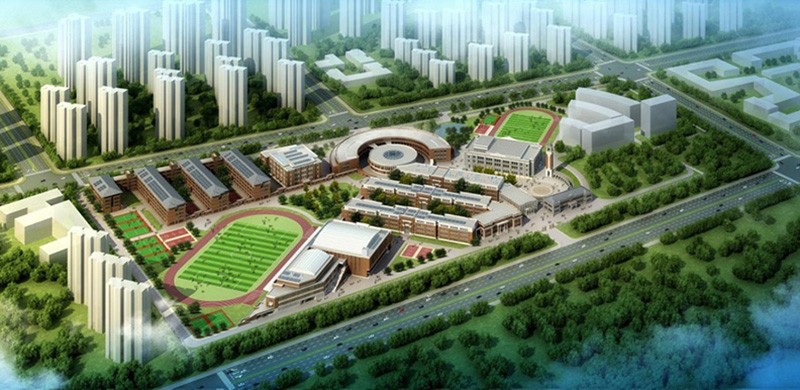 天津生態城中部片區、中天大道與中泰大道交口南側,四至范圍:東至中央大道,南至規劃居住用地,西至中天大道,北至中泰大道。總建筑面積18.75萬平米,其中地上16.32萬平米,地下2.43萬平米。總用地面積20.4萬平米。包括:校史館、禮堂、科技藝術樓、圖書館、實驗樓、行政樓、教學樓、辦公樓、體育館、網球館、學生食堂、服務中心、學生宿舍、教師宿舍、地下車庫、其他連廊及室外部分等。